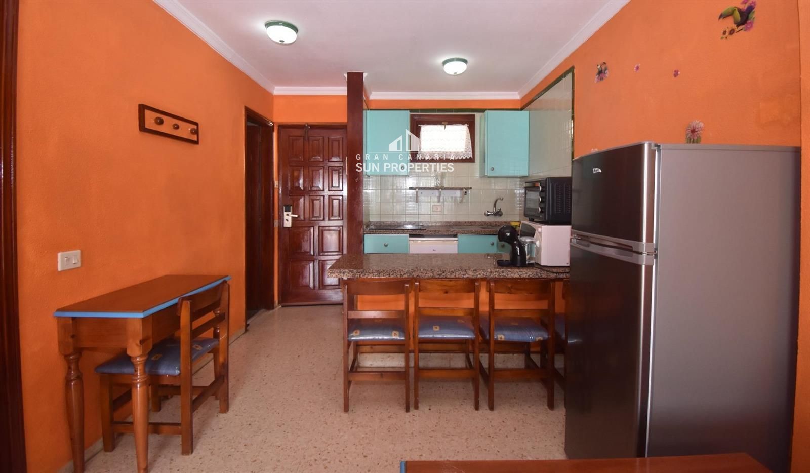 Die Wohnung hat eine bebaute Fläche von 48,75 m² und verfügt über ein Doppelzimmer mit Einbauschrank, ein komplettes Badezimmer und eine Küche mit Essbereich neben dem Wohnzimmer. Die L-förmige Terrasse verfügt über eine Tür, durch die ein Teil davon zu einem zweiten Schlafzimmer umfunktioniert werden kann.