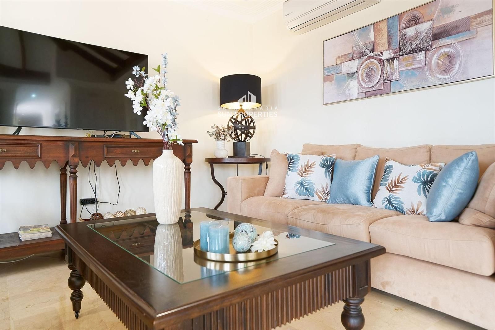 Die Wohnung wird möbliert verkauft. Einige Pflanzen/Blumentöpfe gehören dem Makler. Neue Klimaanlage für ca. 7.000 Euro, Kühlschrank und Warmwasserboiler.