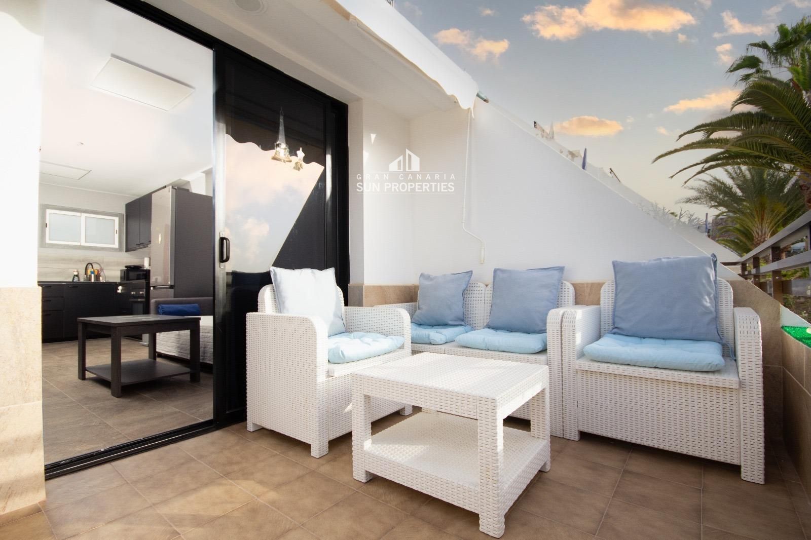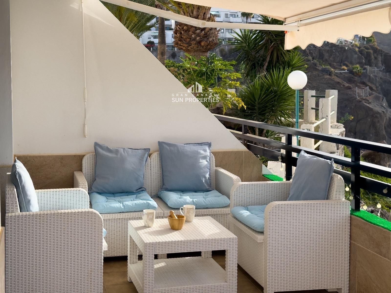 Die Anlage liegt 1500 Meter vom Strand von Puerto Rico entfernt. In unmittelbarer Nähe befindet sich ein kleines Einkaufszentrum mit einem Supermarkt und einem vielfältigen gastronomischen Angebot. Puerto Rico liegt auf der anderen Seite des Hügels, weniger als eine Minute mit dem Taxi entfernt, wo Sie alle Arten von Dienstleistungen finden. Die Wohnung wird nicht touristisch genutzt.