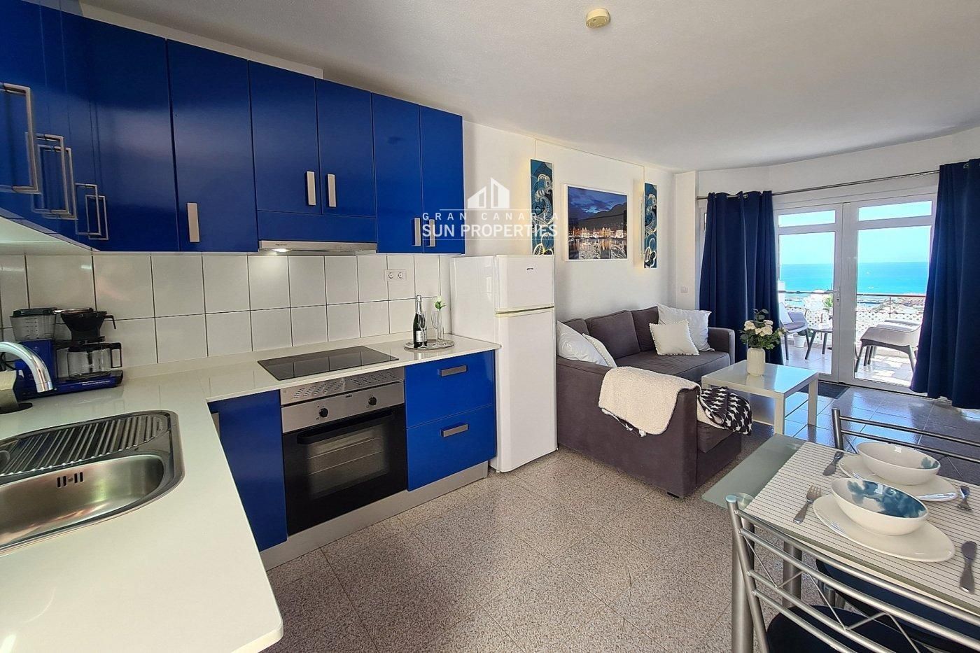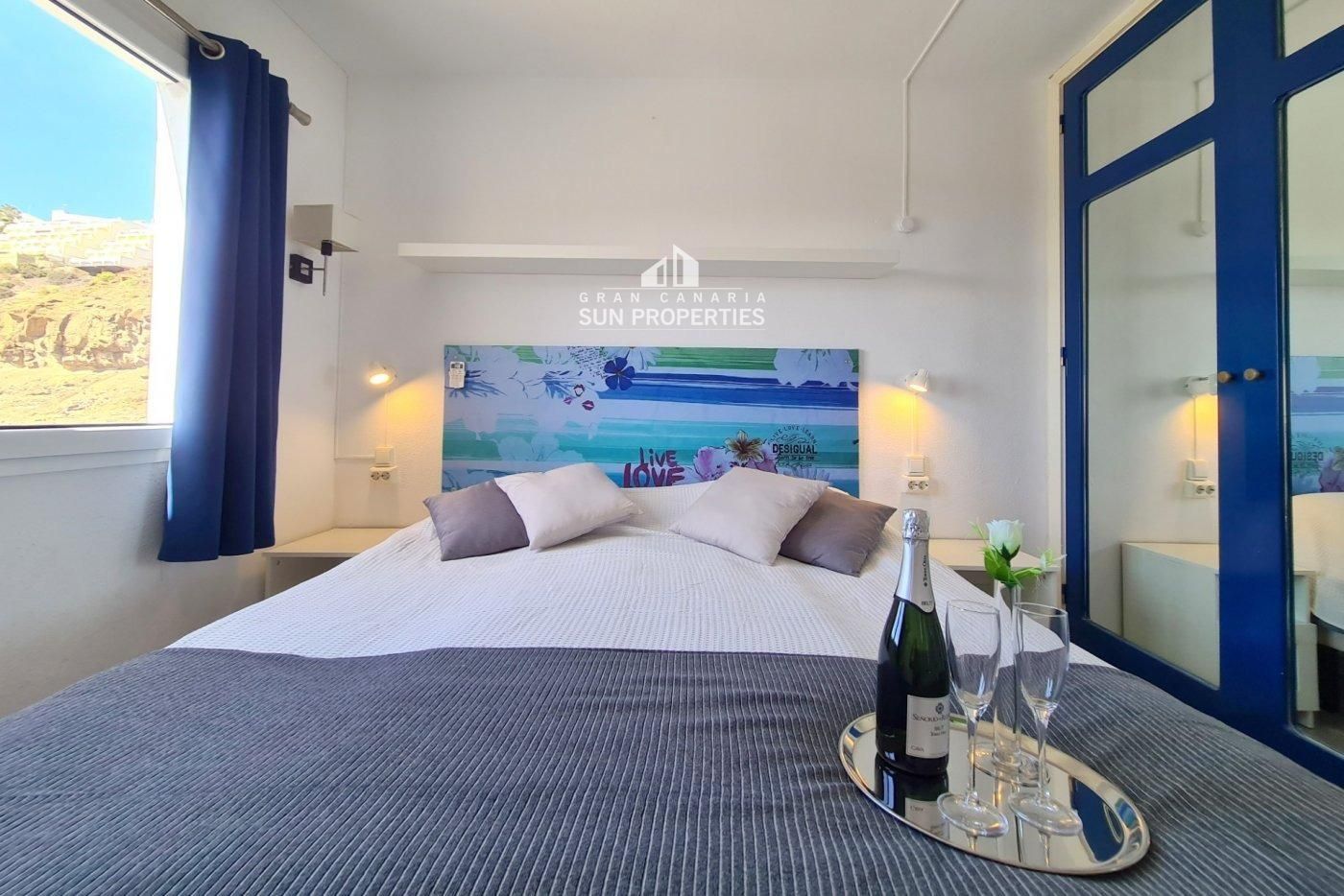 The apartment is located southwest-facing on the second lowest floor of the complex - closest to the sea, which makes the view unique. Stair access to the apartment from the upper part of the complex.