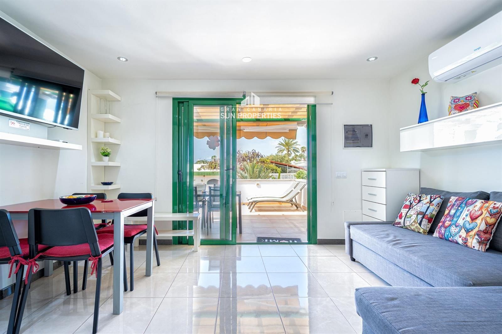 The property offers a well-designed layout combining comfort and functionality. It features a spacious private terrace, sun-exposed all day, perfect for relaxing and enjoying the privileged climate of southern Gran Canaria in a peaceful, green setting.
