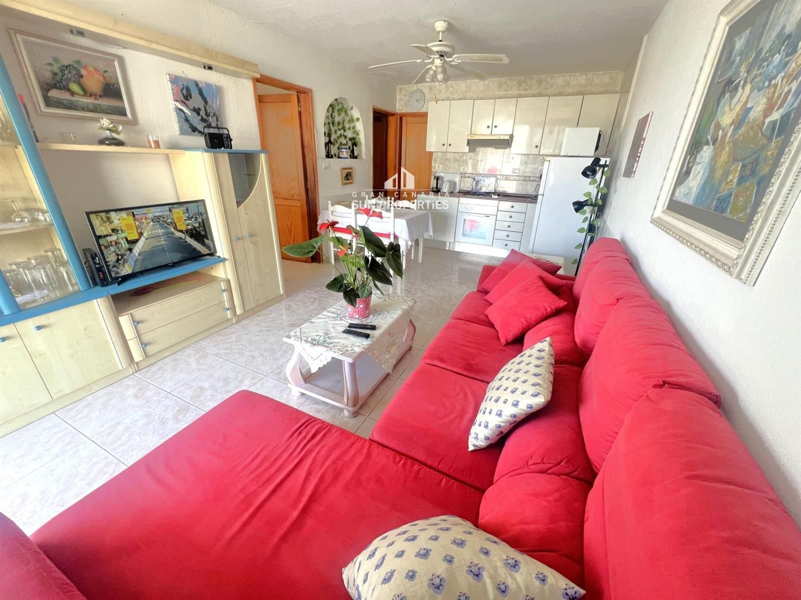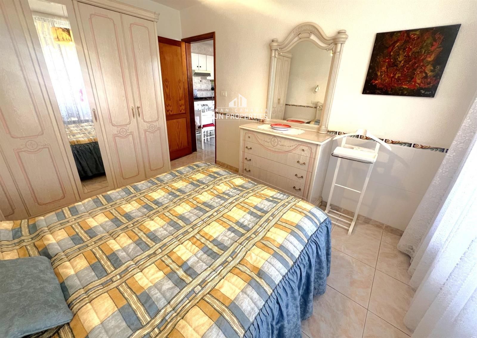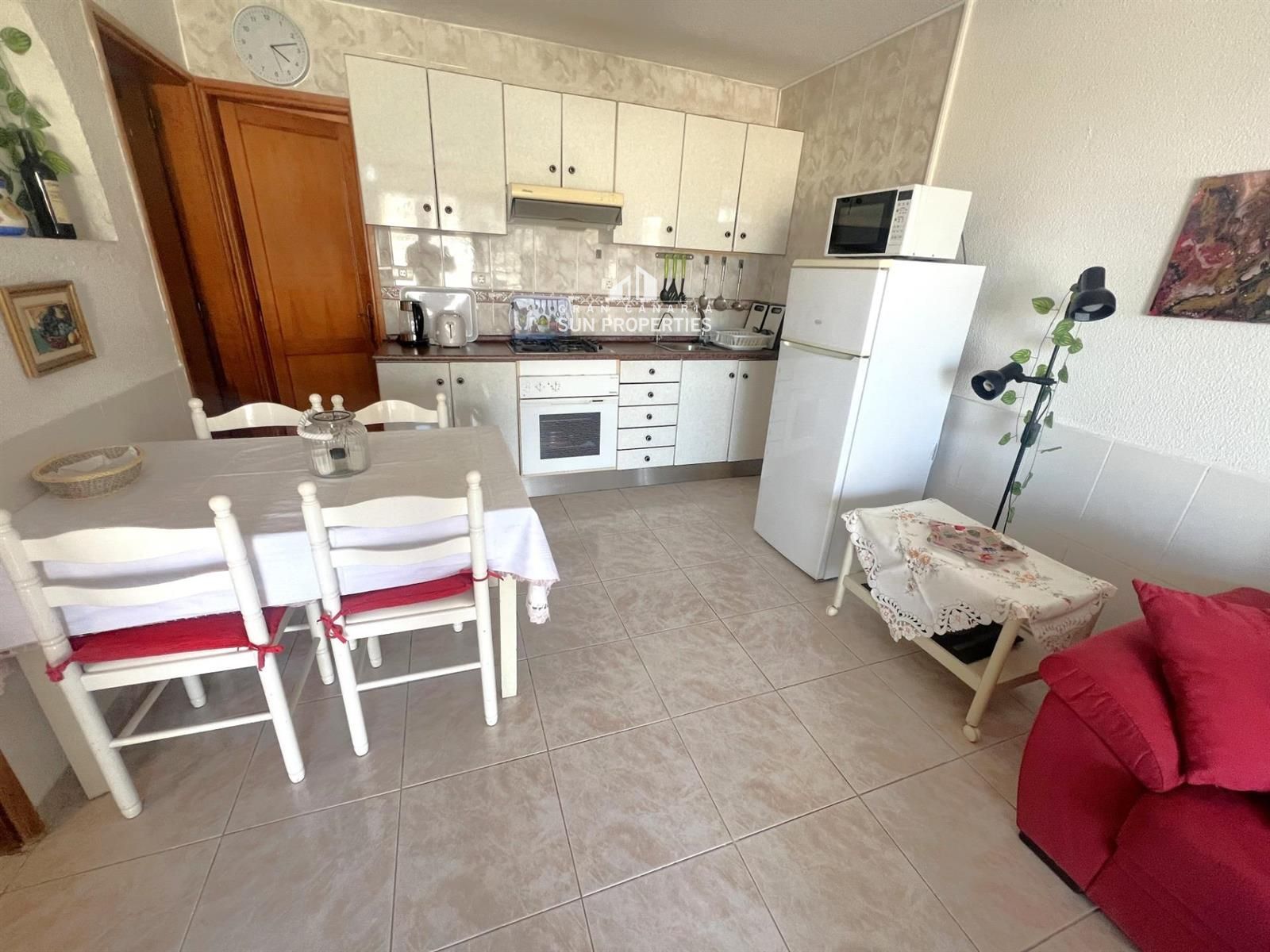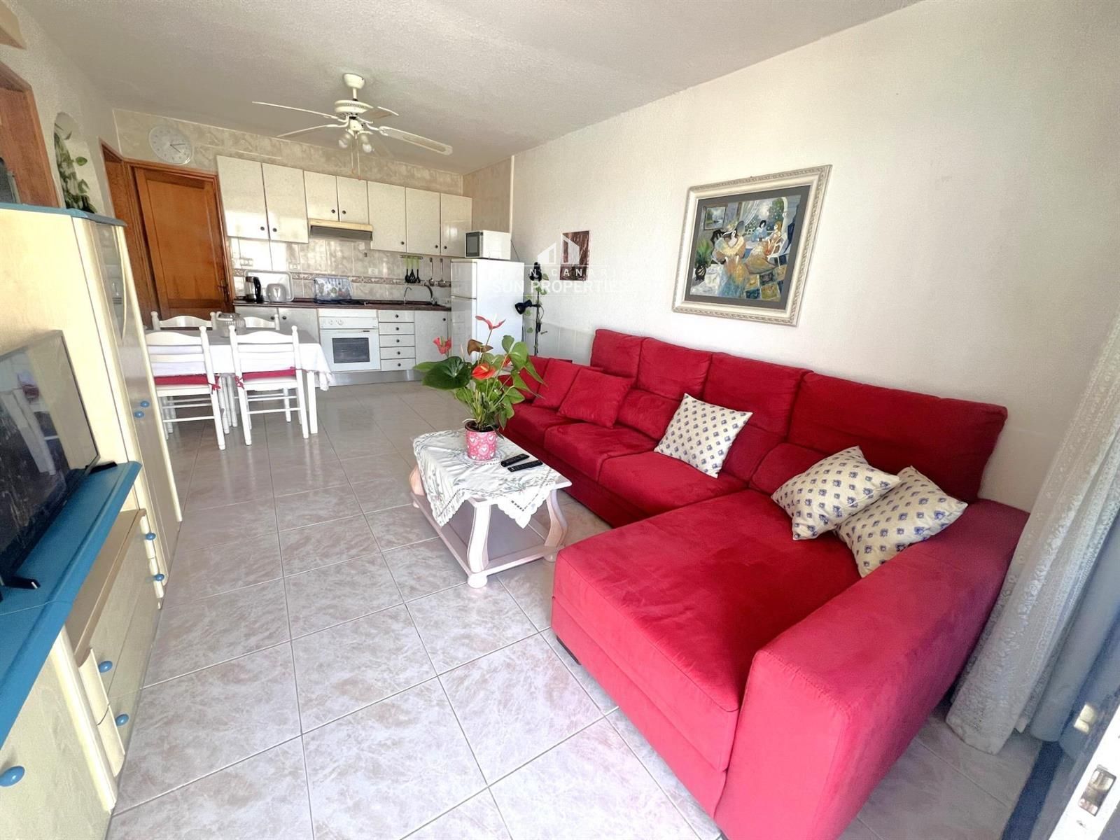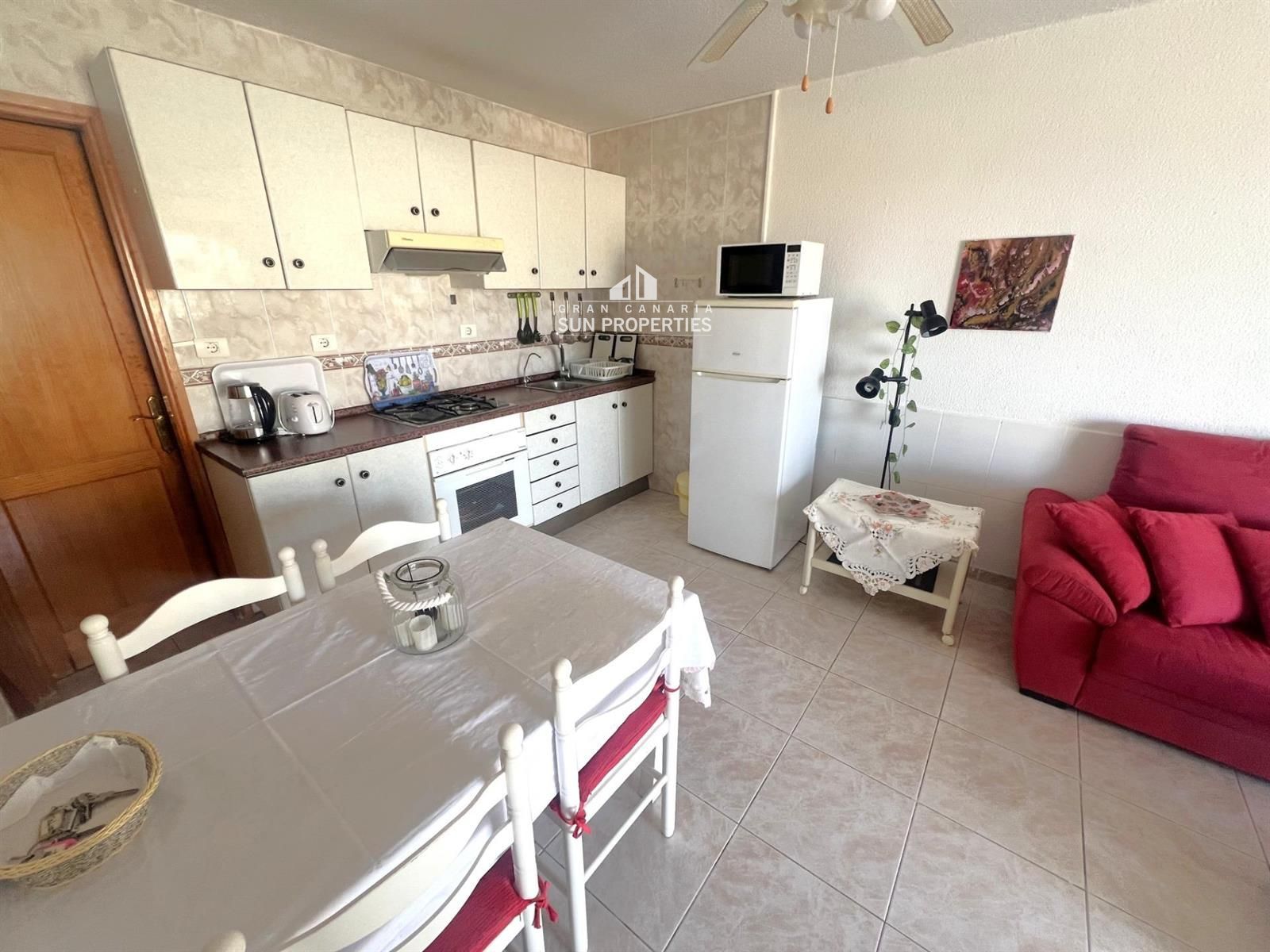 The apartment has been refurbished, has a floor area of 45 m² and comprises a double bedroom, a second single bedroom, a full bathroom, a storage area, and an open-plan kitchen that shares space with a spacious living room thanks to the extension of the terrace.