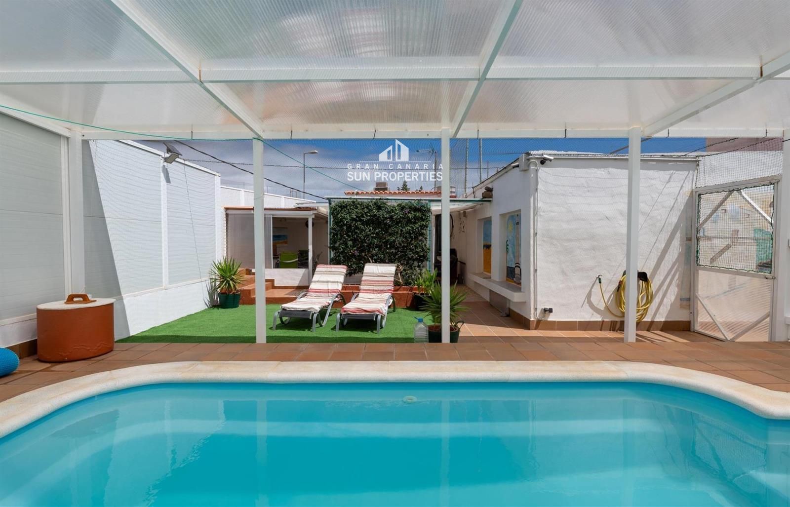 Se vende preciosa en buen estado, ubicada en un encantador pueblo con un entorno tranquilo a solo 20 minutos de Maspalomas y 15 minutos del aeropuerto. Ideal como residencia habitual o vacacional. ✨ Características principales: •Superficie construida: 61 m² •Parcela privada de 346 m² •Piscina cubierta de 5,80 m x 3.10 m y una profundidad de 1,10 x 1,60 m •Parking privado con espacio para hasta 2 coches •Totalmente amueblada, lista para entrar a vivir •Aire acondicionado con función de calefacción •Distribución: 3 dormitorios, 1 baño completo, 1 aseo, cocina equipada y acogedor salón •Amplio jardín con árboles frutales y sistema de riego automático Una vivienda perfecta para quienes buscan tranquilidad sin renunciar a la cercanía de la costa y servicios. 📍 Sardina del Sur es una zona residencial tranquila, con ambiente familiar y bien consolidado. Cuenta con todos los servicios necesarios para el día a día: comercios, colegios, parques y zonas verdes. En los últimos años ha experimentado mejoras urbanas, lo que ha incrementado su atractivo como lugar para vivir o invertir. Bien conectada por carretera, se encuentra a pocos minutos de grandes núcleos urbanos como Vecindario y Pozo Izquierdo, el C.C. Atlántico y de la costa sur de Gran Canaria. 📞 ¡No dejes pasar esta oportunidad! Contáctanos para más información o agendar una visita.