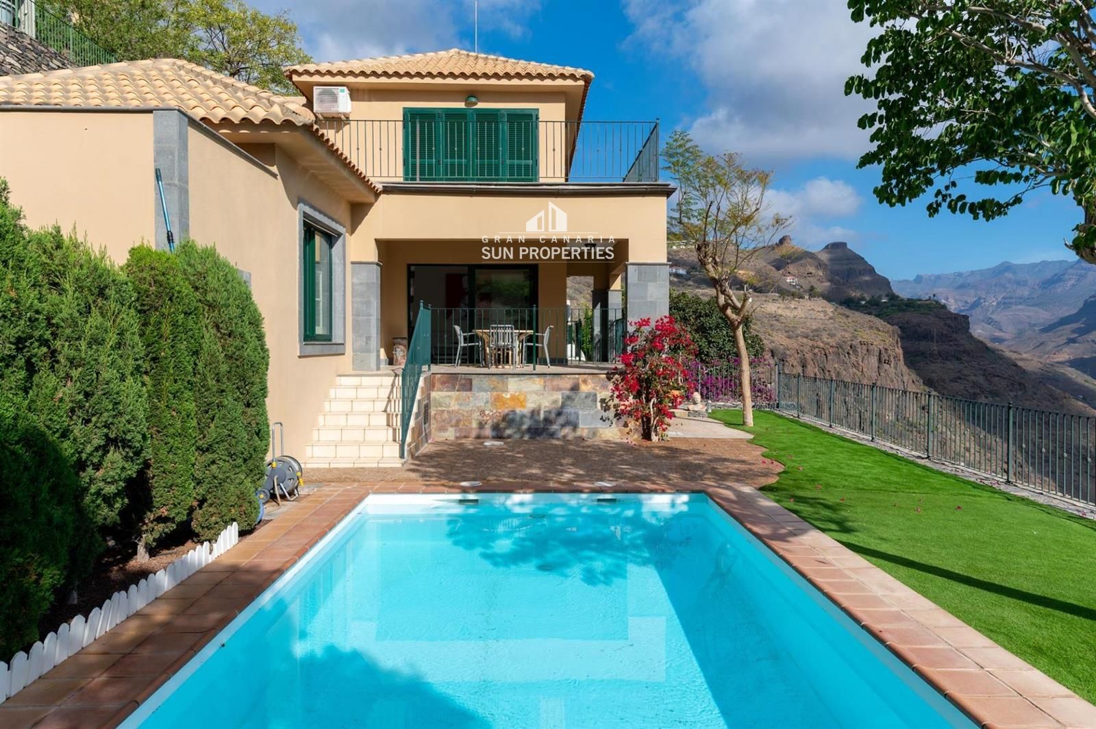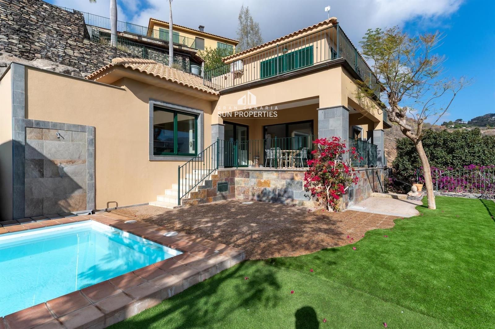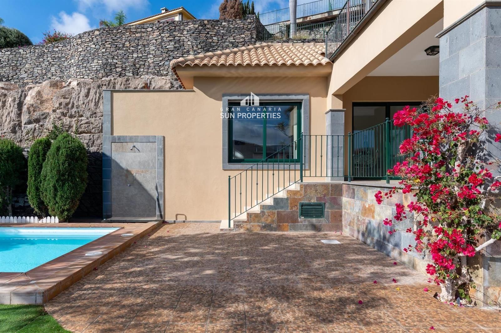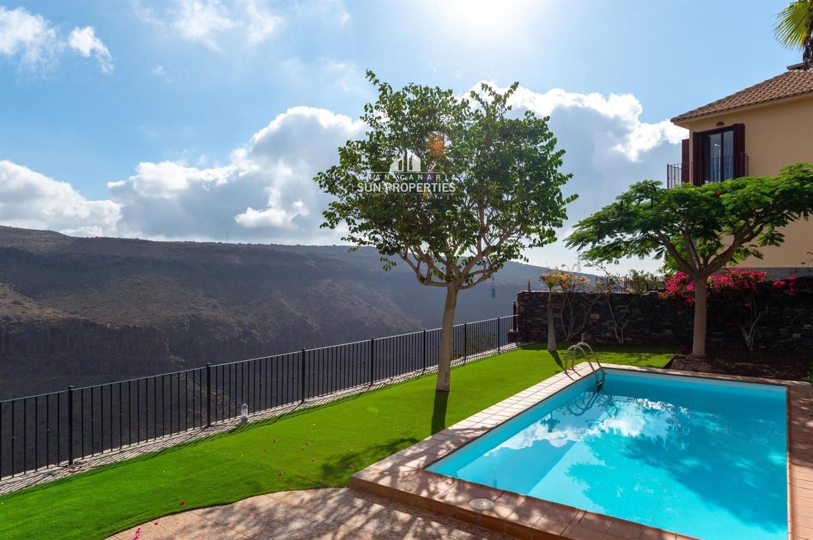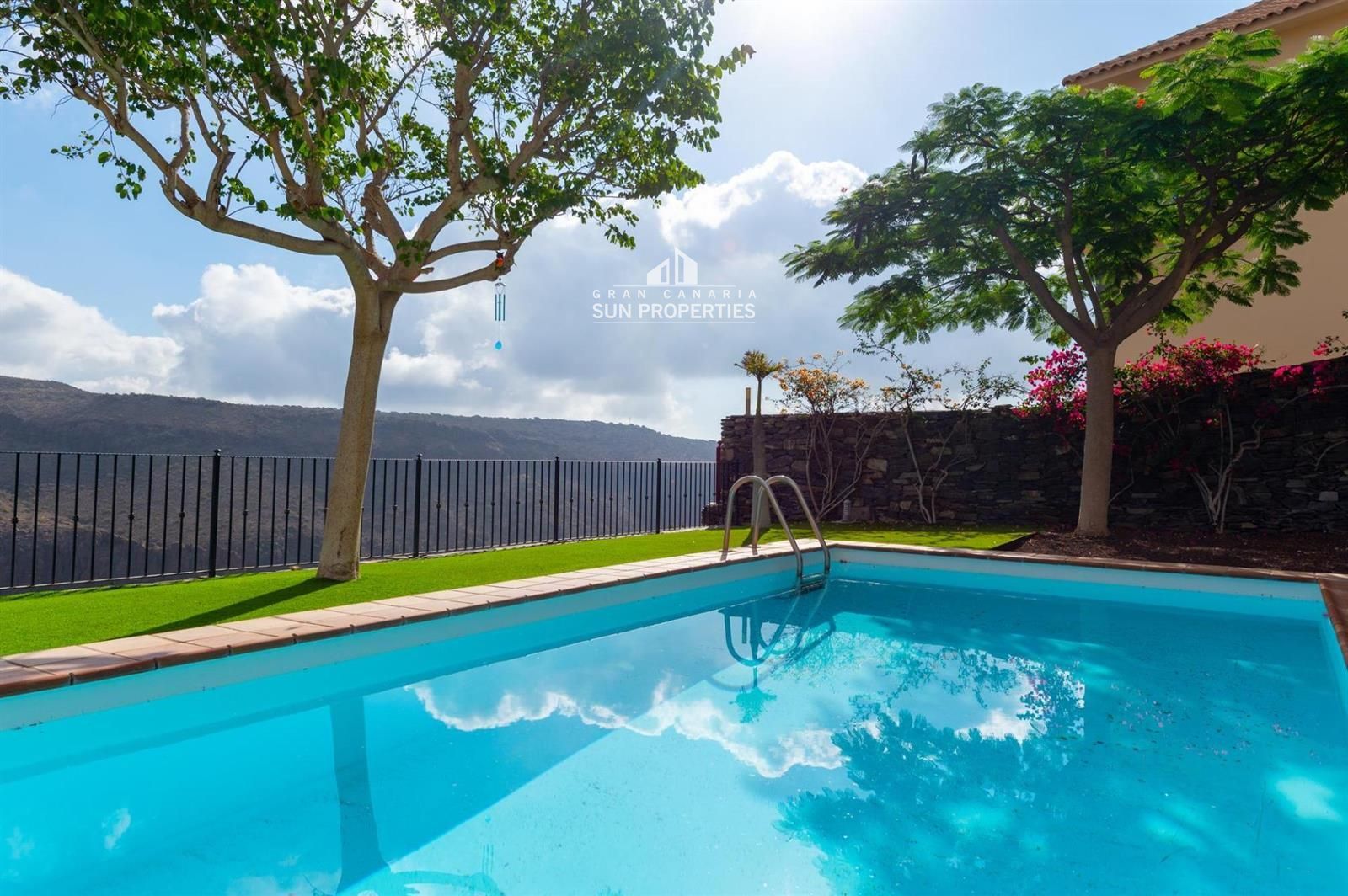 Esta elegante vivienda se encuentra en una exclusiva y tranquila urbanización del prestigioso entorno residencial de Monte León I, a tan solo 10 minutos en coche de Maspalomas y del bulevar de Meloneras. Construida sobre una amplia parcela privada de unos 1.200 m², la propiedad se distribuye en tres niveles y está rodeada de naturaleza, con cuidados jardines, amplias terrazas, zona de barbacoa y espectaculares vistas al mar y a la montaña. En la planta principal se ubica un espacioso y luminoso salón con acceso directo a una gran terraza que rodea la casa y ofrece vistas panorámicas al valle de Ayagaures y hasta Maspalomas. Desde la terraza cubierta, perfecta como zona de comedor exterior, se accede a la piscina y al jardín. Junto al salón se encuentra un comedor independiente con capacidad para toda la familia, una cocina totalmente equipada y una amplia zona de lavandería exterior. En esta misma planta hay un elegante recibidor, un aseo de cortesía y un dormitorio principal en suite, muy luminoso, con grandes ventanales y vestidor. La planta superior alberga dos amplios dormitorios, ambos con baño privado, terraza y preciosas vistas. El área exterior cuenta con una generosa piscina privada, ideal para nadar, relajarse y disfrutar del sol durante todo el día. En el nivel inferior se encuentra un garaje con espacio para dos vehículos grandes y acceso cómodo mediante rampa, además de una estancia adicional de unos 70 m² con salida al jardín lateral, que ofrece múltiples posibilidades: gimnasio, sala de cine, área de juegos o incluso un apartamento de invitados independiente. Los datos de este inmueble deben ser como orientativo, puede existir inexactitudes con la realidad física del inmueble. El precio no incluye impuestos y gastos de la compraventa: Impuesto de Transmisiones Patrimoniales (6,5%), honorarios de Notario, Registro de la Propiedad y gestoría. La oferta se sujeta a cambios de precio, omisión y/o retirada del mercado sin aviso previo.