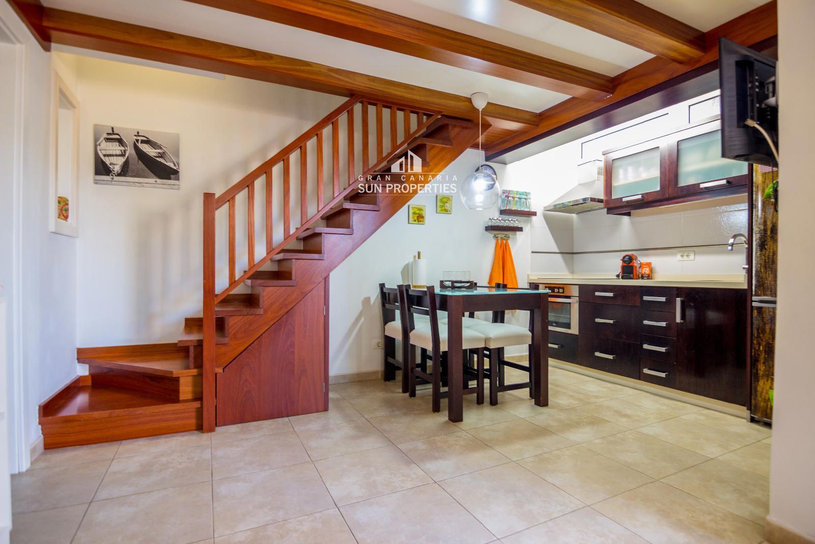 Ciesz się zimą pod słońcem Gran Canarii w tym uroczym dwupoziomowym bungalowie, położonym w spokojnym i bardzo zadbanym kompleksie.