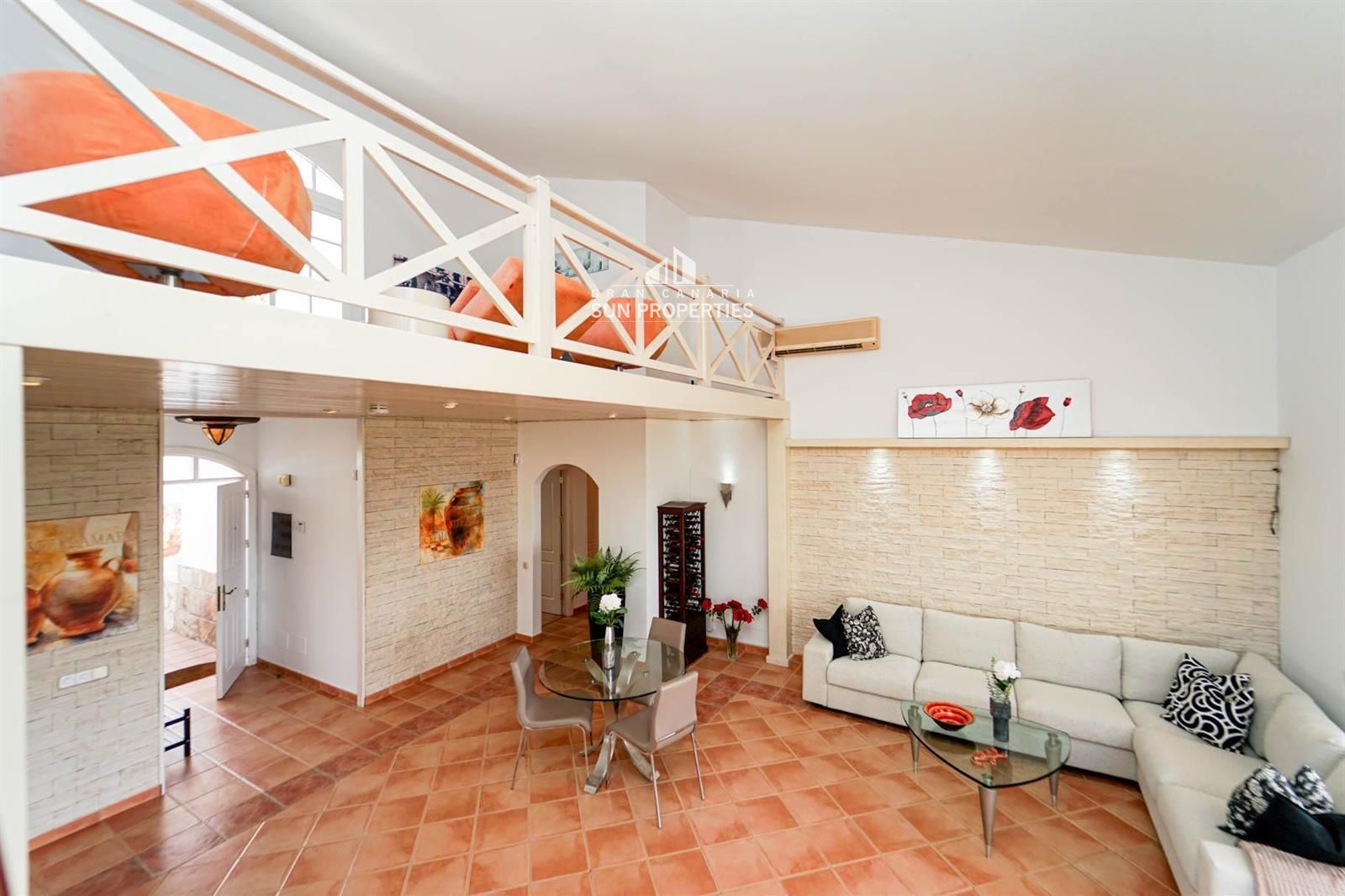 Invändigt framhävs rymdkänslan tack vare takhöjden. Vardagsrummet har även ett charmigt loft, perfekt som avkopplingsyta eller extra utrymme.